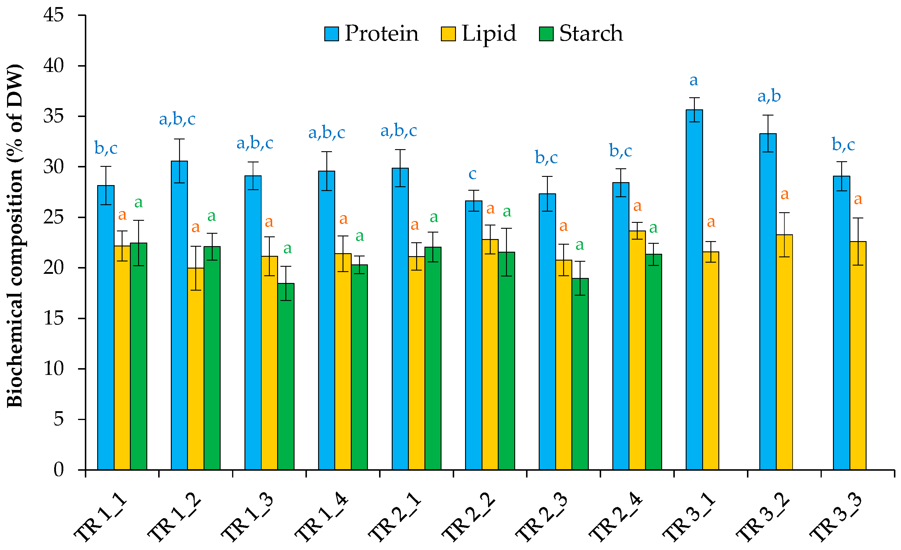 | TR 1_2 | 446 ± 23.3 a | 3.82 ± 0.08 b | 0.55 ± 0.01 b,c | 3.57 ± 0.07 b |