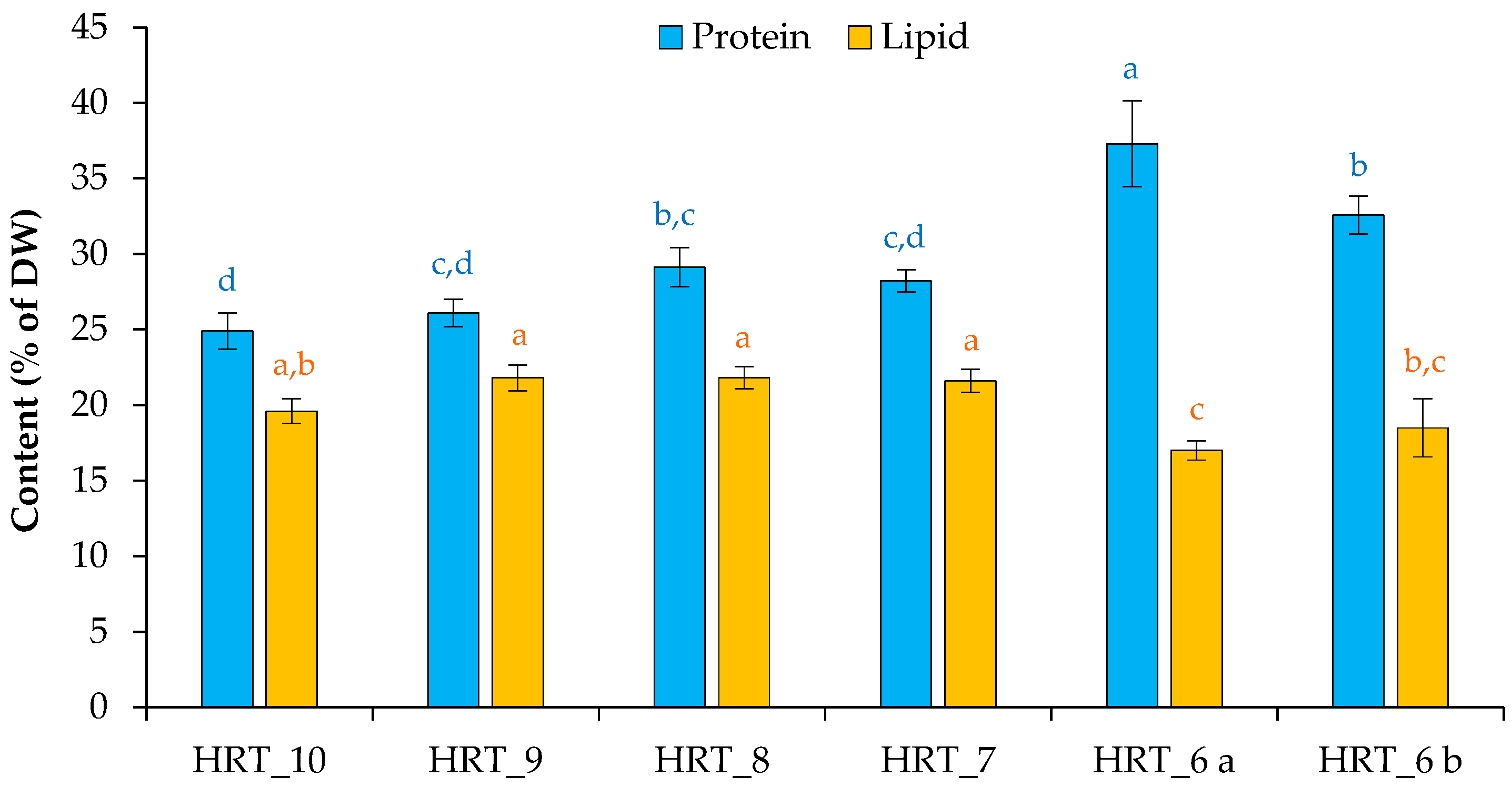 | HRT_6 b | 2.74 ± 0.13 b | 38.34 ± 2.17 a | 26.08 ± 2.49 a | 8.95 ± 1.53 a,b | 6 |