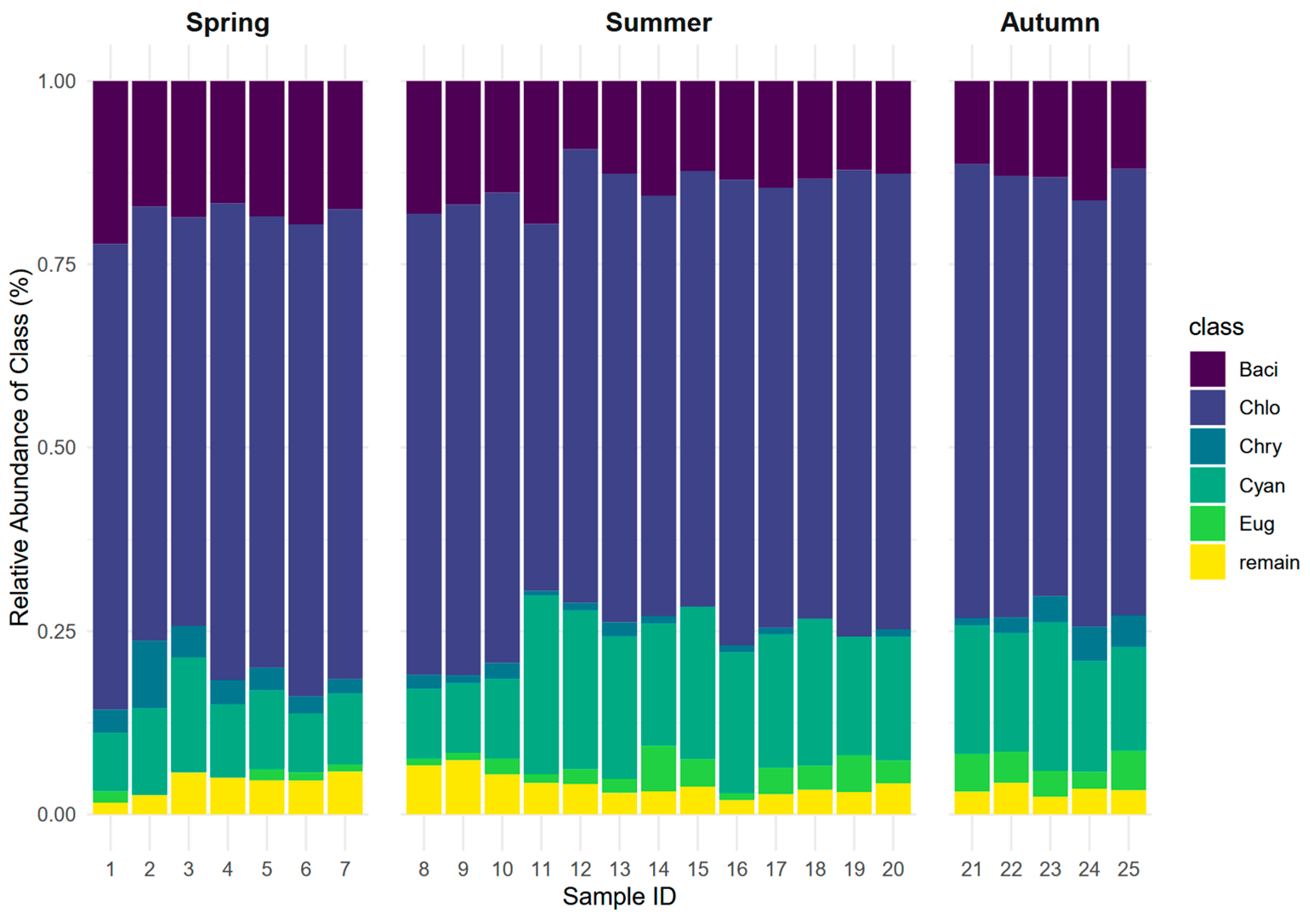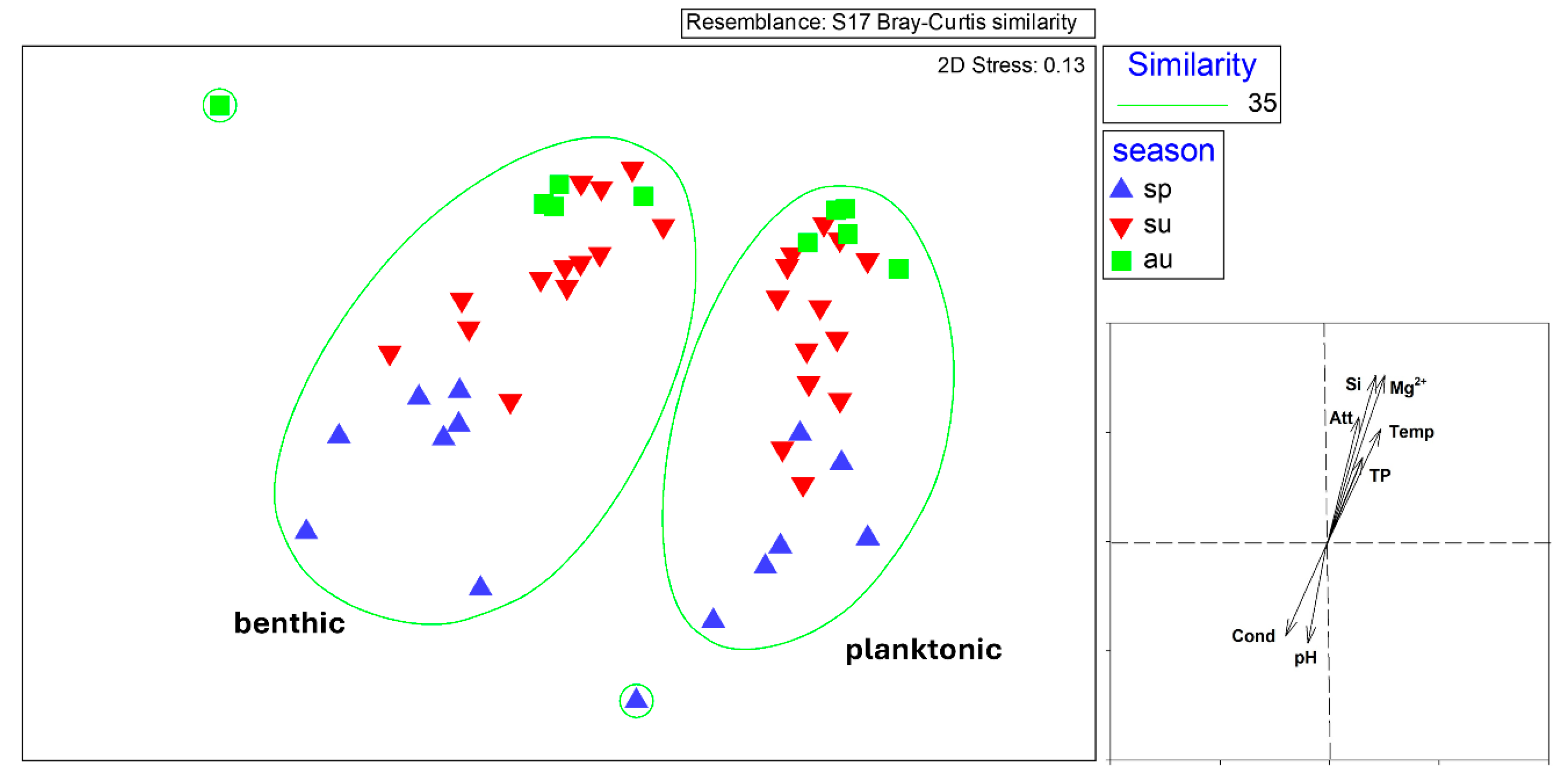 - Tang, X.; He, H.; Qin, Q.; Xu, F.; Liu, F.; Zhang, F. Seasonal variation in the β-diversity of periphytic algae and its response to landscape patterns in the Chishui River, a naturally flowing tributary of the upper Yangtze River. Ecol. Evol. 2025, 15, e70976. [Google Scholar] [CrossRef] [PubMed]