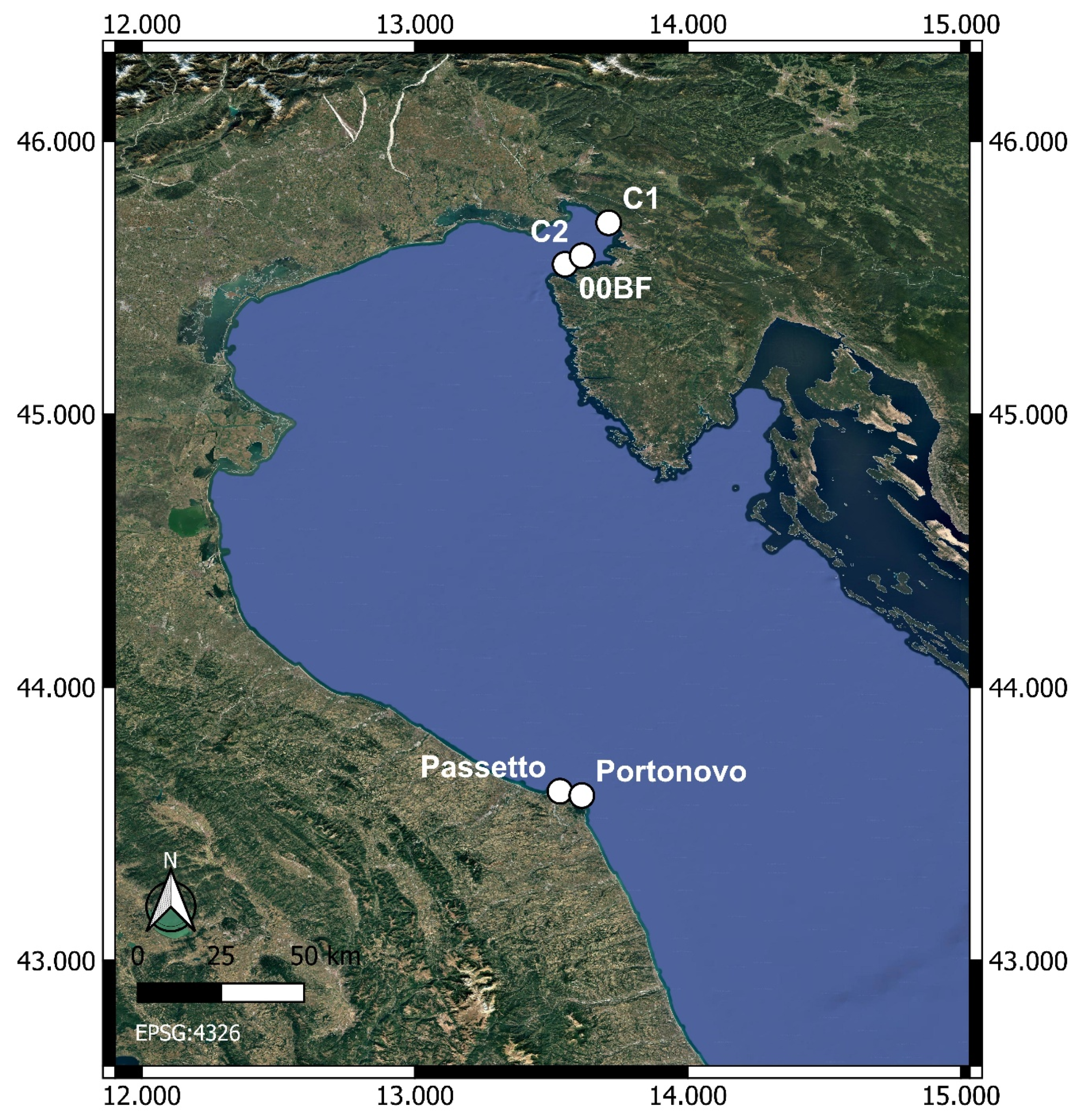 3.3. Comparison Between Gulf of Trieste and Conero Riviera