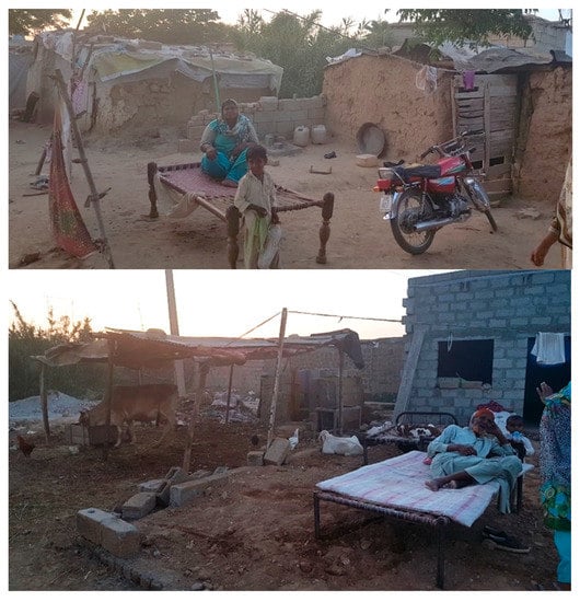 Methodologically, mixed methods involving grounded theory have been seen as a way “to reveal informal aspects and freshly emerging themes” when case studies are analysed in their complexity at various levels [] (p. 935). Urban informalities also generate informal economic activities, which in the South American context have been studied using grounded theory to reveal the complexity of two types of logic used by local entrepreneurs, that of community and market, in order to establish a polycentric system of rules and norms of interaction []. We see similar ways of navigating the spatio-cultural elements in the two investigated Pakistani informal settlements in order to create livelihoods. Grounded theory provides the opportunity to uncover latent social aspects, provide fresh perspectives and help in analysing nuances in human behaviours and culture. This is particularly valuable where cultural barriers exist, such as in women’s access to maternal health care in India’s informal settlements [], Muslim women’s work in Oman’s tourism industry [], or preserving social capital in the slums of Zurabad in Iran []. In our case, the grounded theory approach facilitated access to and better understanding of social groups that are often ostracised within the context of the modern capital of Pakistan. Similar to the analysis conducted by Woodcraft et al. [], grounded theory revealed real empirical insights about the capacities and capabilities of the local communities living in the urban informalities. This research adds to the body of knowledge about informalities by applying an original methodology to geographical and anthropological areas whose importance has only recently started to be recognized.