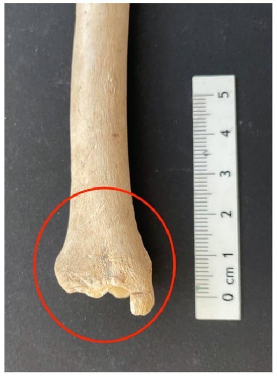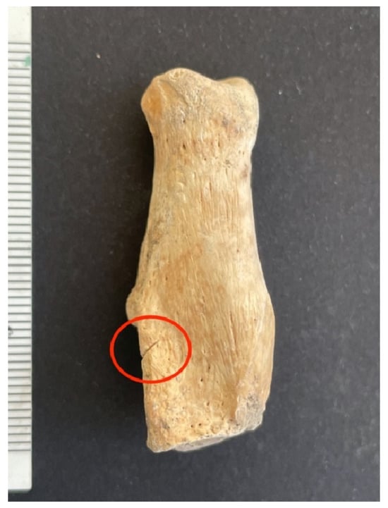 - Okaluk, T.; Greenfield, H.J. Macroscopic chop mark identification on archaeological bone: An experimental study of chipped stone, ground stone, copper, and bronze axe heads on bone. Quaternary 2022, 22, quat501001. [Google Scholar] [CrossRef]
