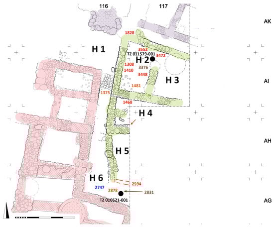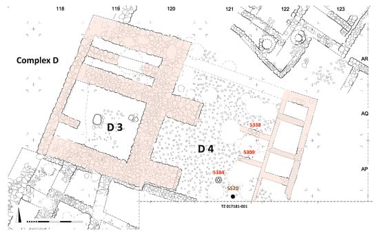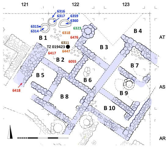 It is particularly interesting that, on the one hand, the architecture continued the layout and pattern of the Late Bronze Age courtyard houses (in the southern excavation area of Area I). On the other hand, the Iron Age innovation of the four-room house was introduced, as can be seen in the northern area. The central part of Area I, however, was probably used for storage and stables. It had no permanent buildings ([44], For a detailed analysis of Late Bronze Age and Iron Age strata see [45,46]).