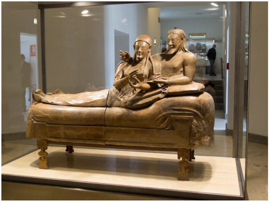 - National Etruscan Museum of Villa Giulia. Available online: https://www.museoetru.it/masterpieces/sarcophagus-of-the-spouses (accessed on 1 December 2024).