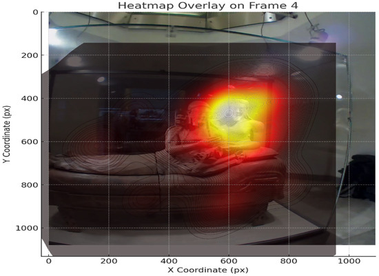 Cumulative heat map based on the 42 visitors and calculated by OpenAI, ChatGPT-4 (accessed on 12 October 2024) Python coding using eye-tracking data.