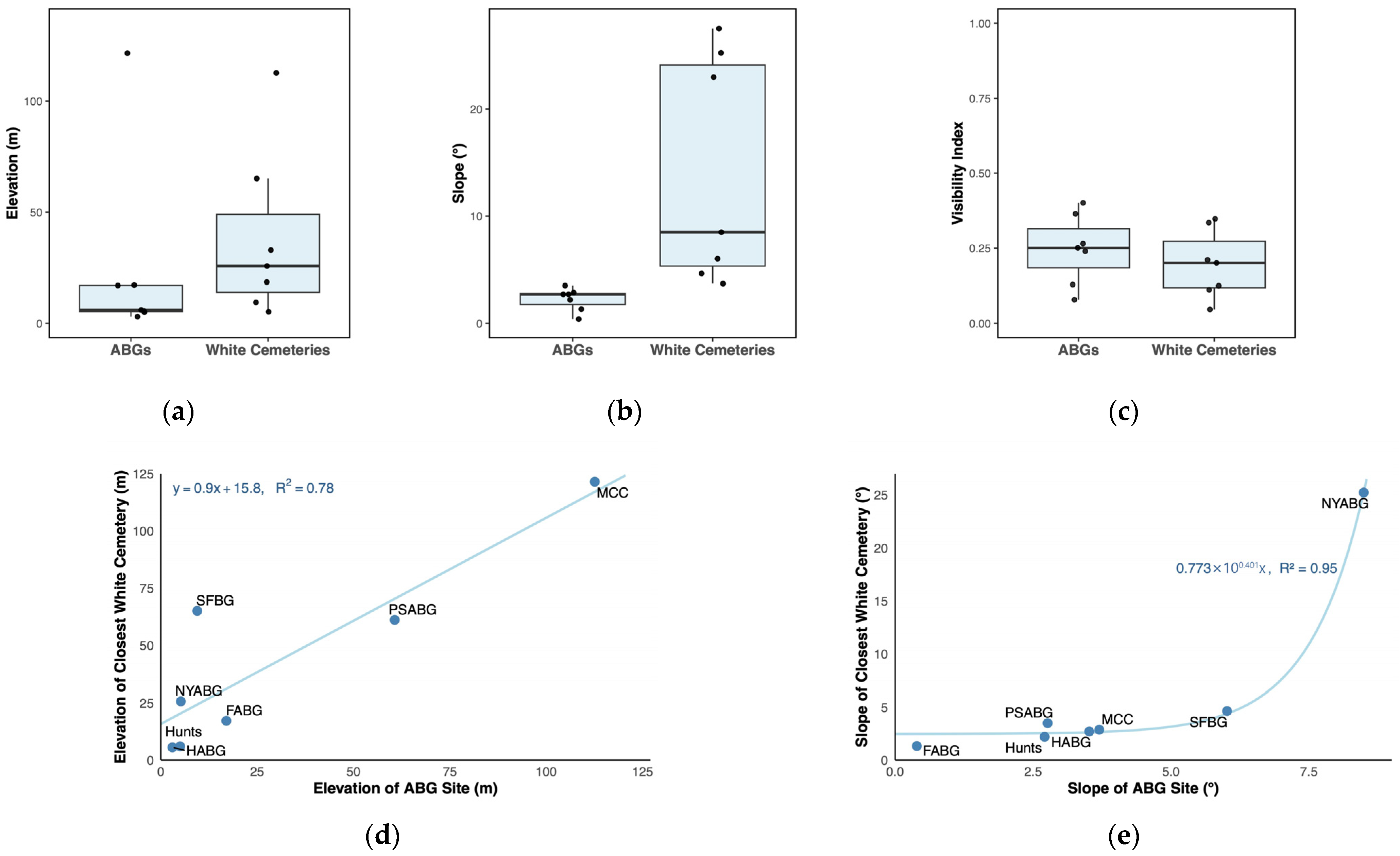 FABG (Nearest white cemetery) | 17.2 (113) | 1.33 (3.70) | 0.365 (0.211) | 7.07 (7.07) | 1196 (1196) |