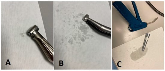 - Offner, D.; Brisset, L.; Musset, A.M. Evaluation of the mechanical cleaning efficacy of dental handpieces. J. Hosp. Infect. 2019, 103, e73–e80. [Google Scholar] [CrossRef] [PubMed]