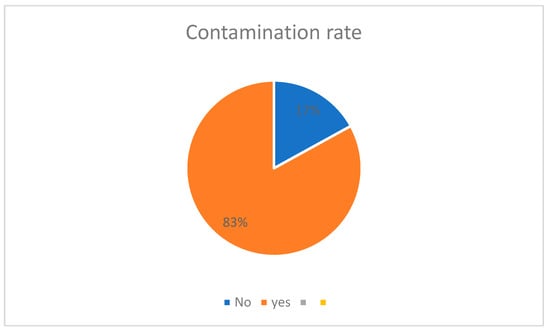 After cultivation, the plates were removed from the greenhouse and, using a magnifying glass, the colony-forming units per milliliter (CFU/mL) counts were performed. There was no dilution of the initial sample. As a control, test tubes containing the broth without contamination were placed in bacteriological incubators at 37 °C together with the plates used to observe whether they were cloudy, which would indicate possible contamination. To identify microorganisms, the Matrix-associated laser desorption-ionization–time of flight (MALDI-TOF) test was used, which is very efficient and accurate in identifying bacteria, viruses, and other rare microorganisms [].