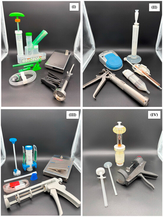 - Schlegel, U.J.; Sturm, M.; Eysel, P.; Breusch, S.J. Pre-packed vacuum bone cement mixing systems. A further step in reducing methylmethacrylate exposure in surgery. Ann. Occup. Hyg. 2010, 54, 955–961. [Google Scholar] [CrossRef][Green Version]