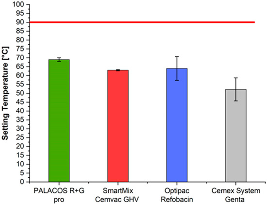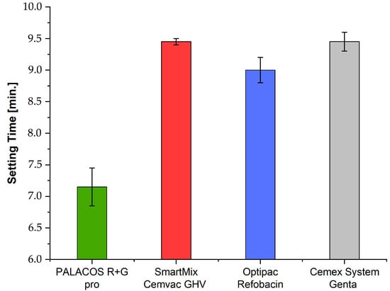 | ISO setting time | Cemex–Palacos (p = 0.0018), Optipac–Palacos (p = 0.0083), Palacos–SmartMix (p = 0.0016) |
