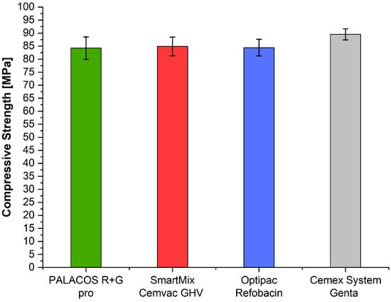 | ISO compressive strength [MPa]) | n = 5 | 89.5 | 84.2 | 84.4 | 84.9 | 2.77 | 0.0755 |