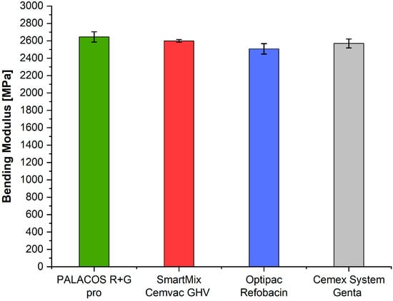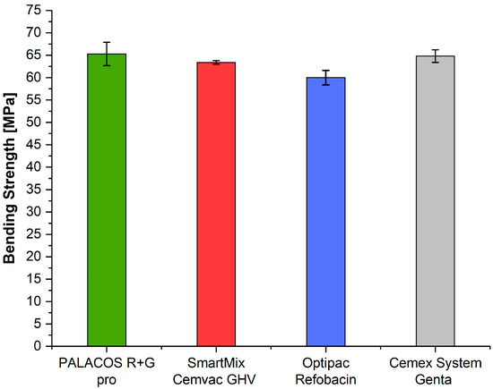 | ISO bending modulus | Optipac–Palacos (p = 0.0028), Optipac–SmartMix (p = 0.0489) |