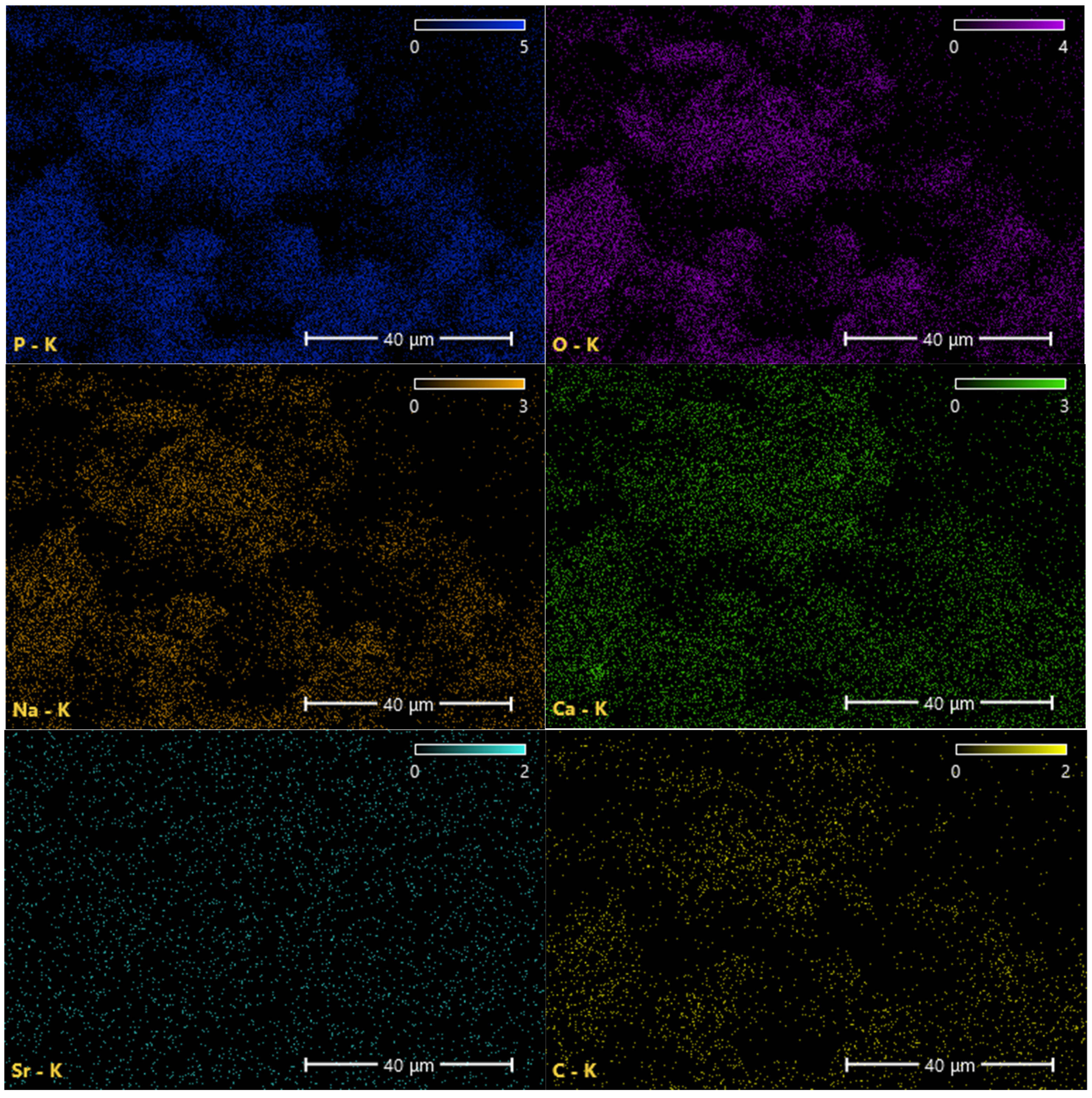 - Ryu, J.H.; Mangal, U.; Lee, M.J.; Seo, J.Y.; Jeong, I.J.; Park, J.Y.; Na, J.Y.; Lee, K.J.; Yu, H.S.; Cha, J.K.; et al. Effect of strontium substitution on functional activity of phosphate-based glass. Biomater. Sci. 2023, 11, 6299–6310. [Google Scholar] [CrossRef] [PubMed]