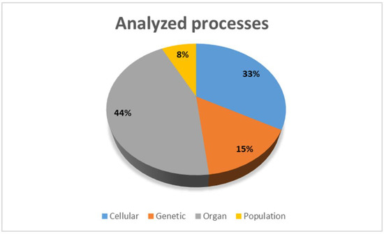 Pathophysiological processes analyzed in the reviewed studies. One study may have investigated more than one process. The majority of the studies investigated organ (44%) and cellular level (33%) processes. Genetic level analysis was pursued in 15% of the studies, while general characteristics of patient populations with persistent AF were investigated in 8% of the studies.