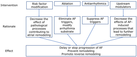 One of the drivers in the development of non-pharmacological management of AF was the low efficacy of medical arrhythmia management and the lack of new medications. As the ablation procedure also struggles to effectively treat PeAF, new therapeutic targets will need to be identified. Electrophysiological changes of the atrial myocardium—caused by prolonged AF—lead to remodeling and the progressive nature of the arrhythmia, “AF begets AF” [3]. This discovery led to intense research in the pathophysiology of remodeling in PeAF, which may identify new treatment options. The objective of this review is to synthesize the research findings published within the past 10 years.