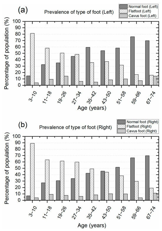 - Ramos-Frutos, J.A.; Miguel-Andrés, I.; León-Rodríguez, M.; Ortiz-Lango, L.A.; Orozco-Villaseñor, S.L.; Vidal-Lesso, A. Type of feet in a Mexican population: Analysis of the footprint morphology and literature review. Rev. Mex. Ing. Bioméd. 2023, 44, 6–15. [Google Scholar] [CrossRef]