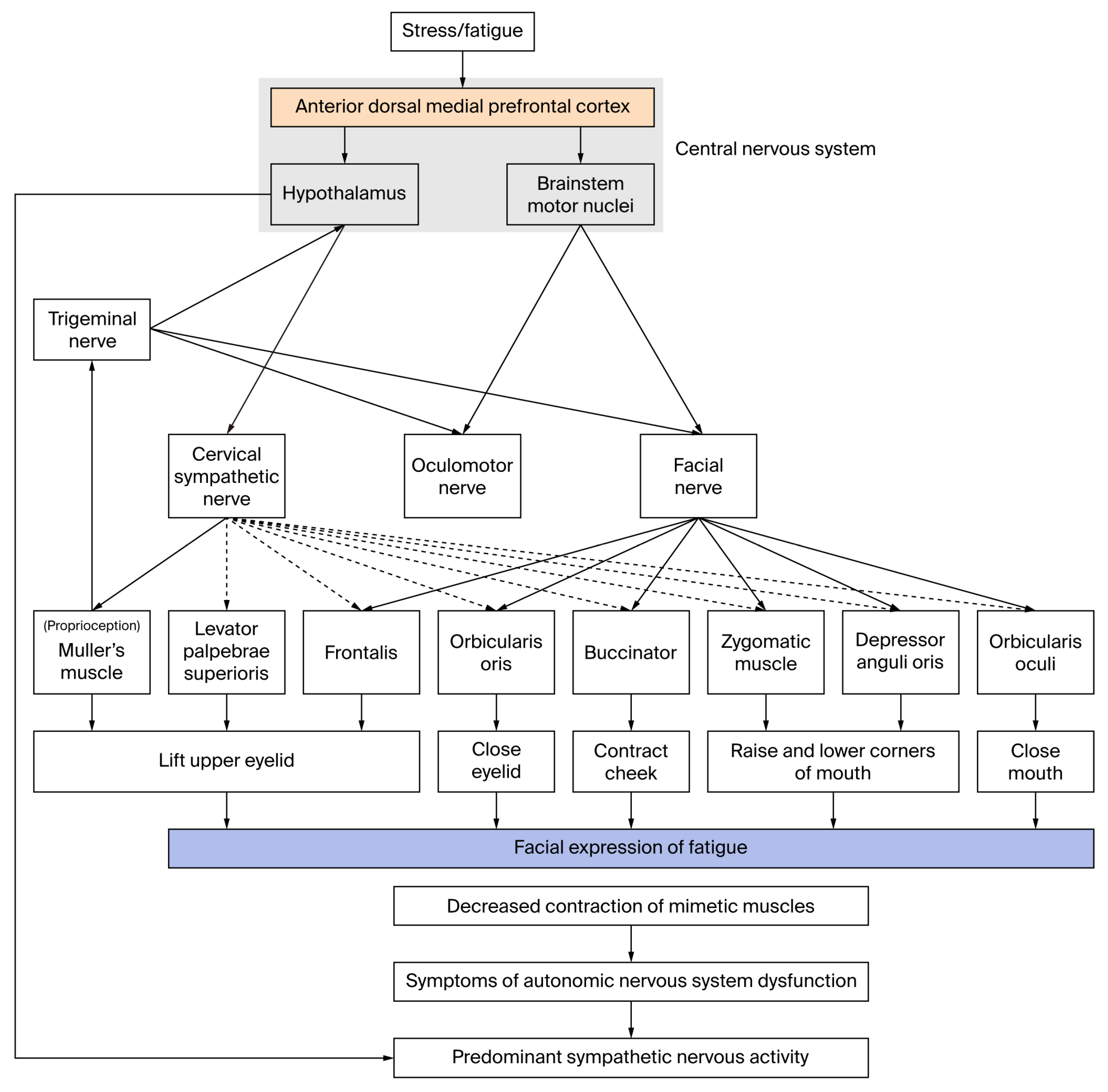 Figure 9. Mechanism of facial expression of fatigue (hypothesis).