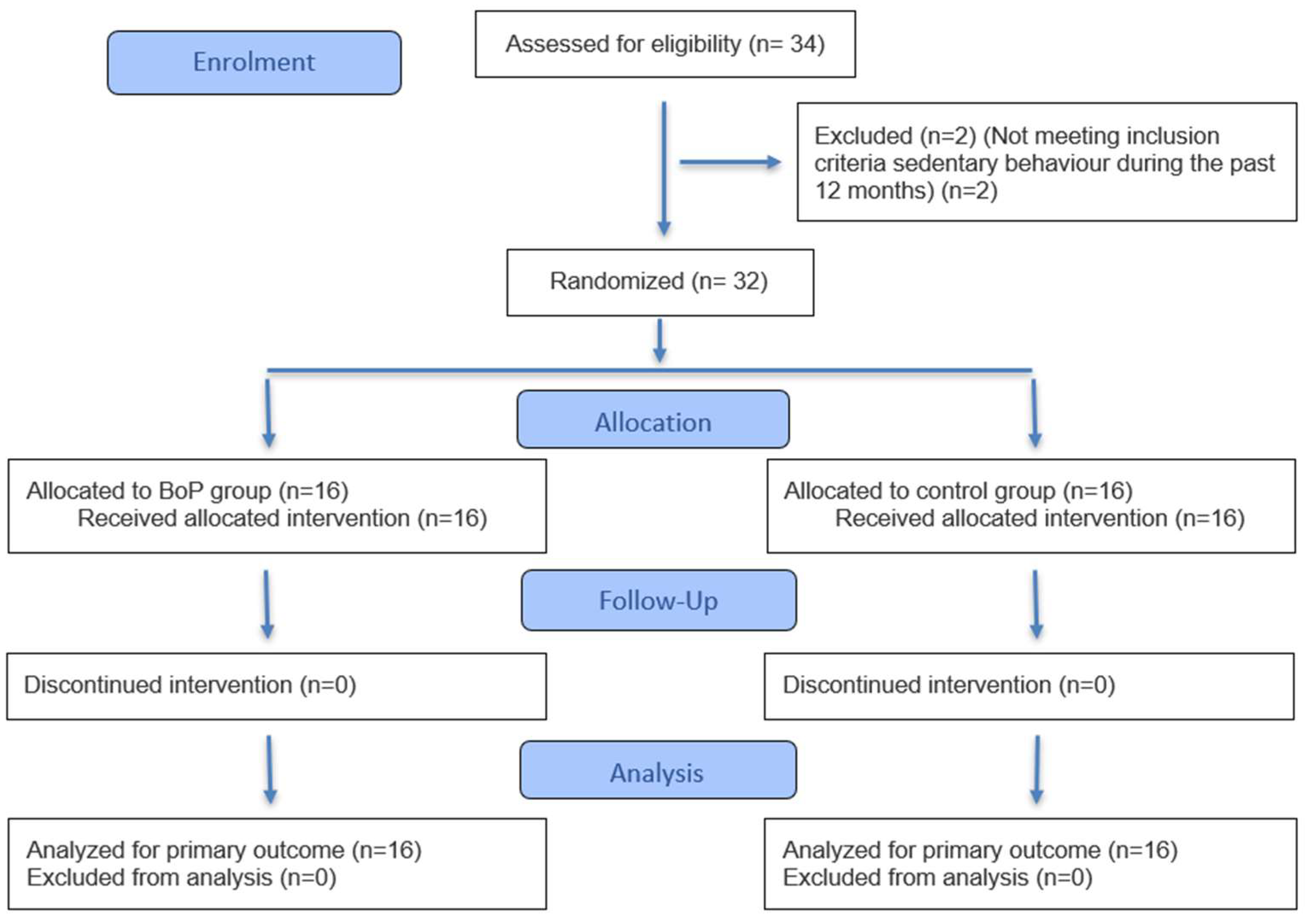 | Variable | BoP (n = 16) | CG (n = 16) |