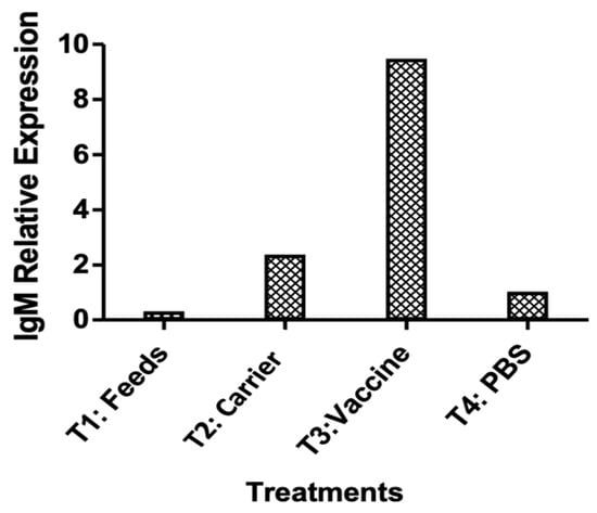 Based on RT-PCR analysis, the oral immunization effectively increased the IgM levels, which conferred protection against bacterial challenge (Figure 9).