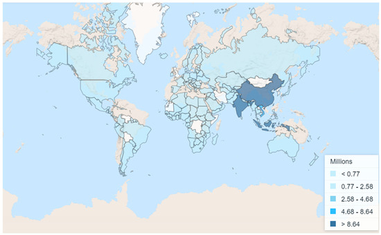 - World Bank. World Population Review. Fishing Industry by Country. 2024. Available online: https://worldpopulationreview.com/country-rankings/fishing-industry-by-country (accessed on 18 January 2025).