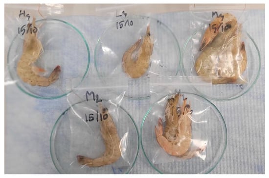 Shrimp showing their appearance after grow-out trial (L stands for Low, M for medium, and H for high doses, i.e., 1, 2, and 3 g/kg diet, respectively.