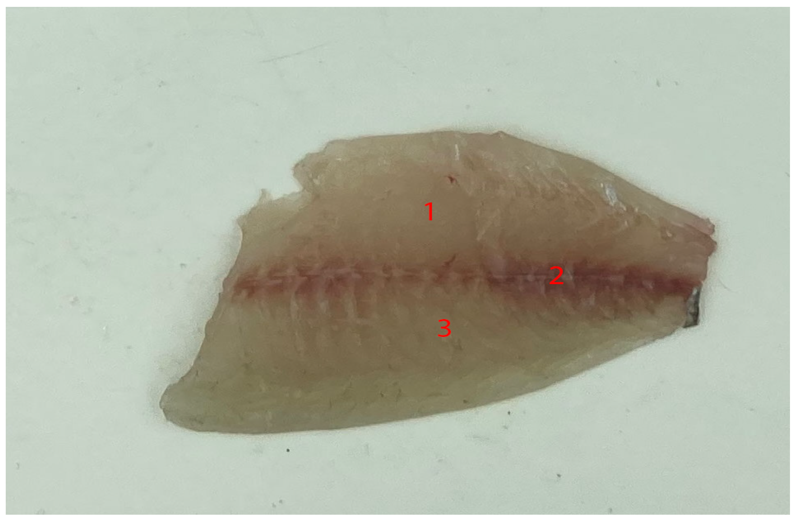 - Erdağ, M.; Ayvaz, Z. The Use of Color to Determine Fish Freshness: European Seabass (Dicentrarchus labrax). J. Aquat. Food Prod. Technol. 2021, 30, 847–867. [Google Scholar] [CrossRef]