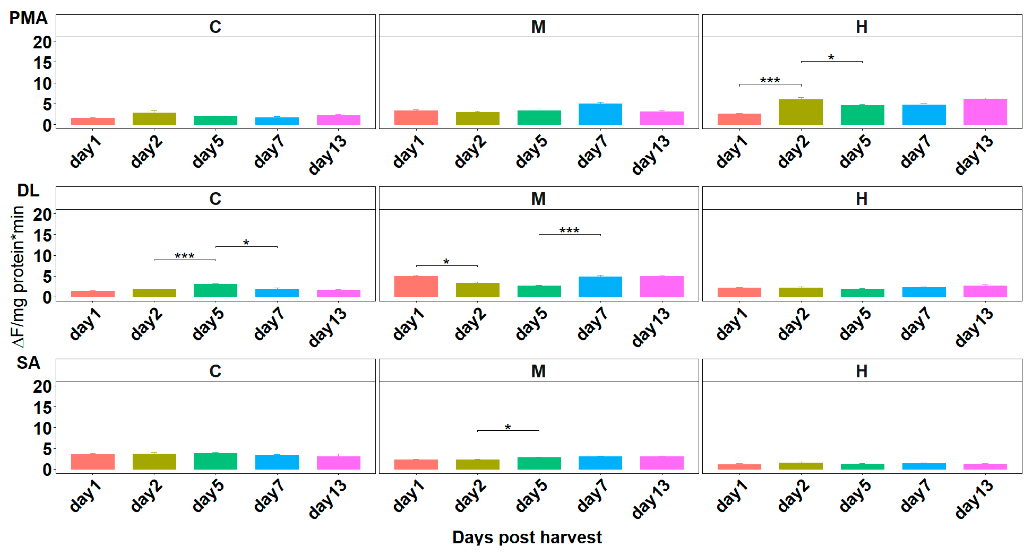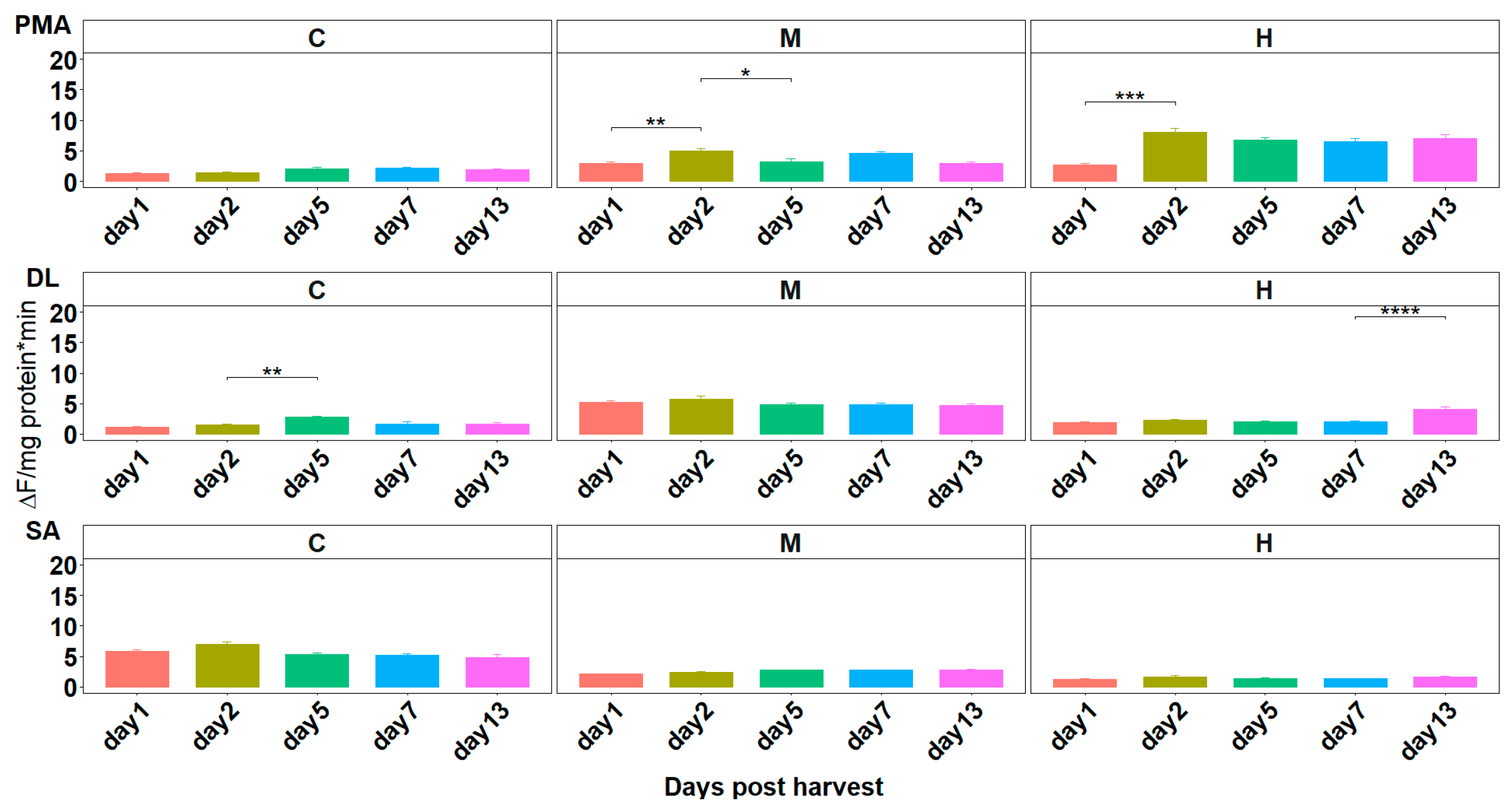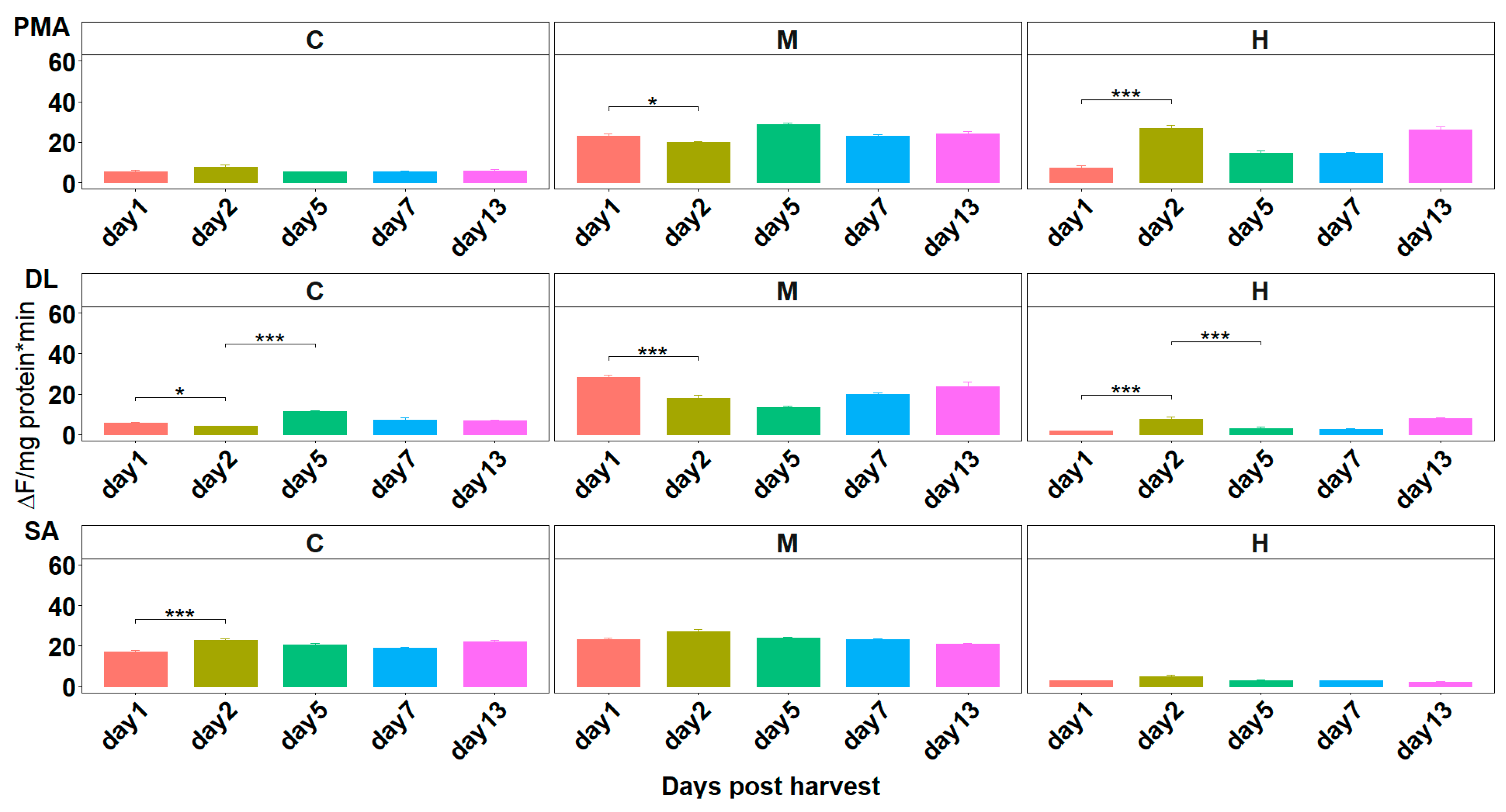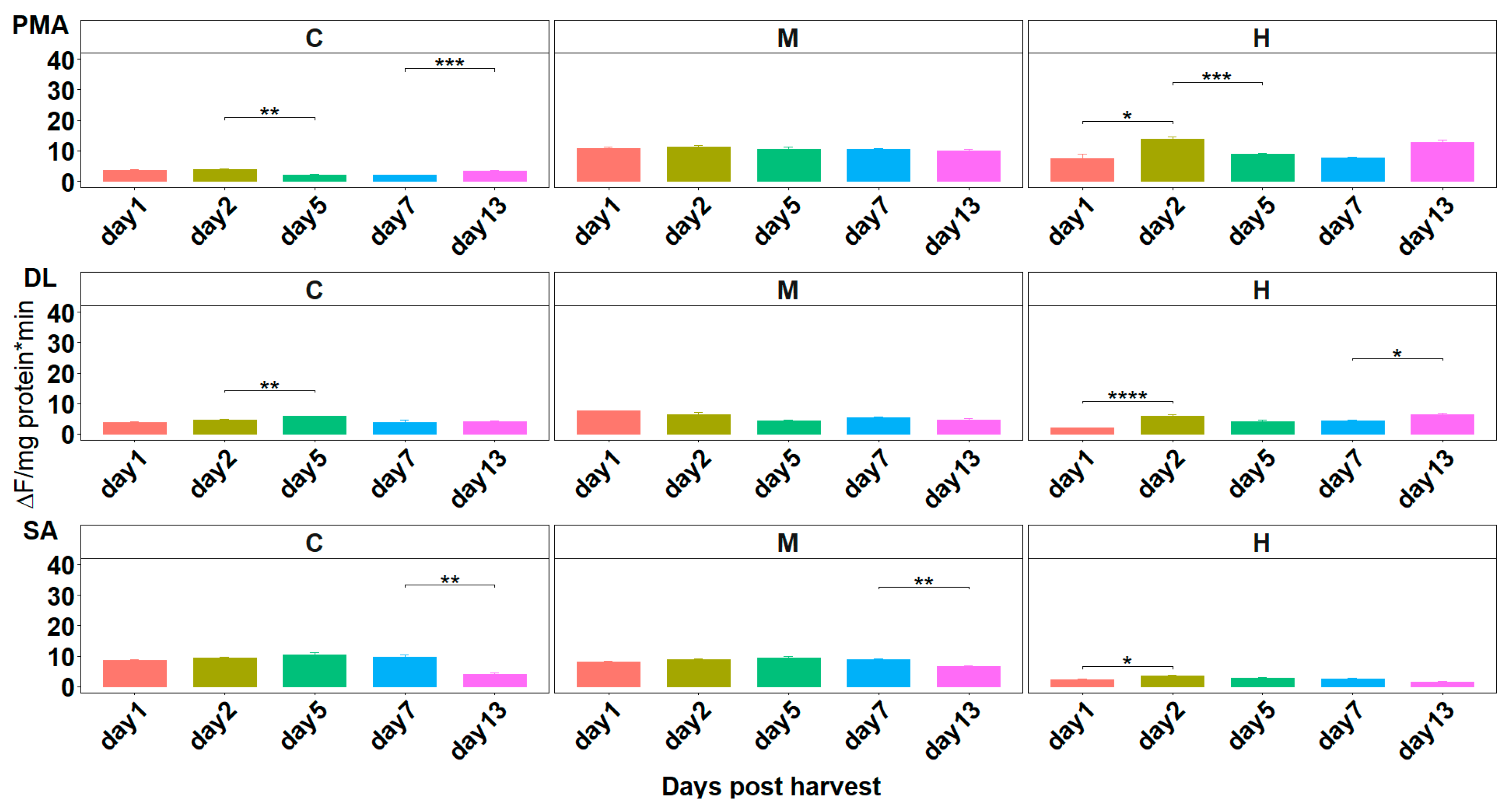 3.1. Initial Post-Harvest Enzymatic Activity: Proteolytic Activity at Harvest (Day 0)