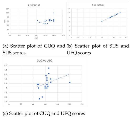 The other aspect that needs to be discussed is the evaluation of the conversational system. Studies related to conversational search focused majorly on qualitative measures [57,58,61,62] (task completions, SUS, or cognitive load) and empirical measures [8,60,63] (precision, recall, and F1 score). Kaushik et al. [2] introduced the new framework for evaluation of conversational search, which is based on six different factors. Following this investigation, we evaluated the system based on different usability metrics and found the correlation between them, presenting them in a scatter plot to show the similarity between the subjects’ grading the systems on user experience.