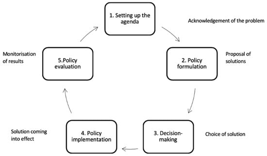 - Agenda—comprising the two first steps of the public policy cycle, as described in Figure 1 (“Setting the Agenda” and “Policy Formulation”), corresponding to a predecisional stage;