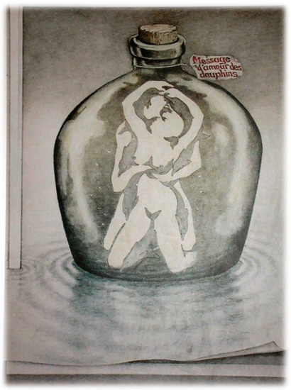 Figure 12 shows approximately ten dolphins in the white spaces between the embracing couple etched on a bottle. “Our students only saw a naked couple etched on a bottle… We had to train them to see the dolphins/fishes…” (P6 supported by others). “It was clear that the students were looking for faces or people because the first images had faces or people that seemed to be hidden from some of the students…” (P2, supported by others).