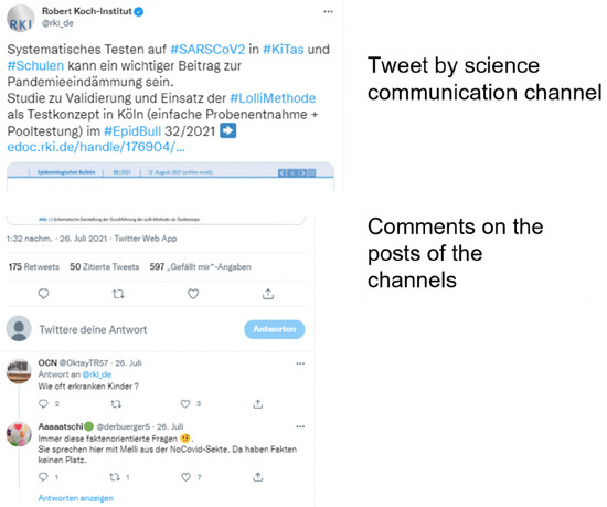 - Schmidt, F.; Jaki, S.; Mandl, T. (Eds.) Wissen um Corona: Wissenschaftskommunikation, Informationsverhalten, Diskurs; Universitätsverlag Hildesheim: Hildesheim, Germany, 2022. [Google Scholar] [CrossRef]