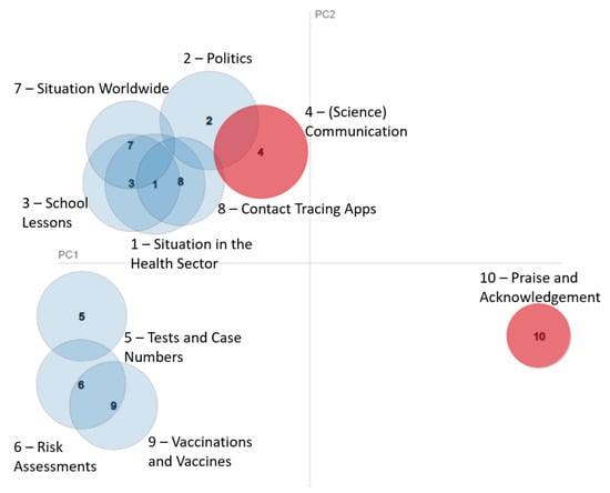 - Mitera, H. Topic-Modeling-Ansätze für Social Media Kommunikation in der Coronapandemie. Inf.-Wiss. Prax. 2022, 73, 197–205. [Google Scholar] [CrossRef]