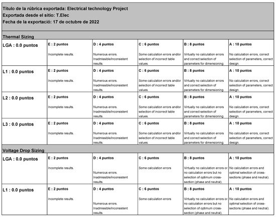 This research has been funded by Universitat Politècnica de València in the frame of the Aprendizaje + Docencia: Proyectos de Innovación y Mejora Educativa program, A + D PIME 2021, with reference 1781, Desarrollo de competencias en diseño de Instalaciones Eléctricas de Baja Tensión mediante Aprendizaje Basado en Proyectos.