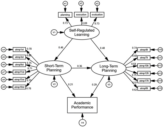 In this context, positive and significant associations are expected to be found between SRL and short- and long-term ATMP, in addition to the expectation of finding that short-term ATMP positively influences long-term ATMP. Similarly, both short- and long-term ATMP are expected to have a positive impact on students’ AP.