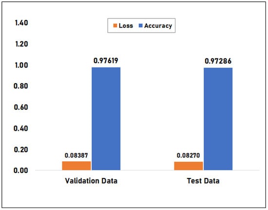Google Colaboratory was used for model training. This is a cloud service that provides access to computational infrastructure such as memory, storage, processing power, graphics processing units (GPUs), and tensor processing units (TPUs) for applications like machine learning. The FSL dataset was divided into training, validation, and testing datasets with a split ratio of 8:1:1, and the training dataset has 16,800 or 1120 samples per class—an equal amount of samples for each class. The FSL dataset is pipelined using the TensorFlow Dataset API to enhance training efficiency. Prior to training and evaluation, the datasets are shuffled and batched. The model was trained using a batch size of 8 and 25 epochs. Callback functions were included in the training setup to aid in preventing overfitting, tracking, logging training progress, and saving checkpoints. Table 3 summarizes the training configuration.
