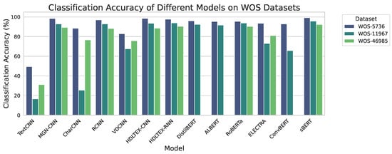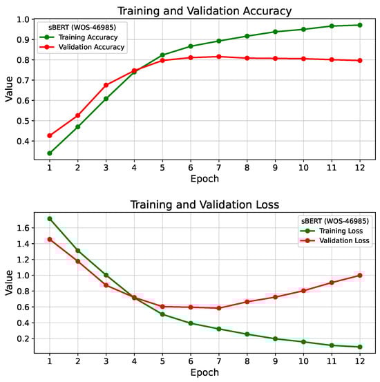 Most notably, the proposed model, sBERT, consistently outperformed other models across the datasets, achieving the highest accuracy on WOS-5736 at 99.21%. This superior performance is achieved by the incorporation of a multi-headed attention mechanism that enables sBERT to focus on the most salient portions of the text. Moreover, the utilization of word embeddings enriched by position information contributes to its success by effectively capturing semantic relationships and context—a vital aspect of text classification tasks.