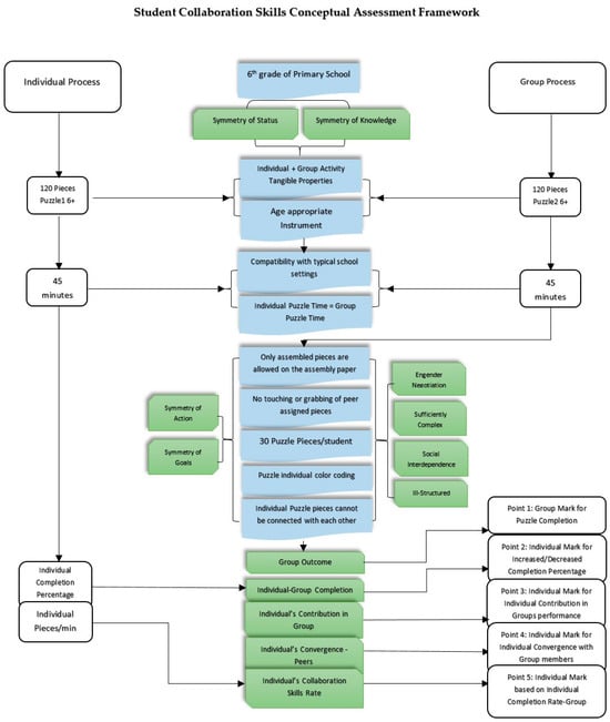 - Demetroulis, E.A.; Papadogiannis, I.; Wallace, M.; Poulopoulos, V.; Theodoropoulos, A.; Vasilopoulos, N.; Dasakli, F. Collaboration Skills and Puzzles: Development of a Performance-Based Assessment—Results from 12 Primary Schools in Greece. Educ. Sci. 2024, 14, 1056. [Google Scholar] [CrossRef]
