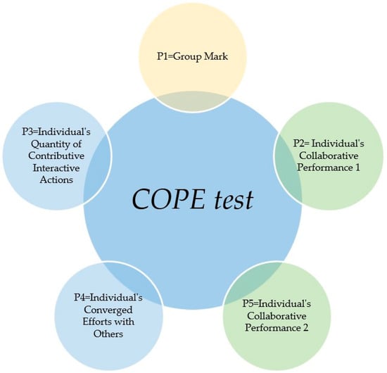 Evans [5] identifies seven major frameworks (ATC21S, Cambridge Assessment, Pearson P21, Essential Skills and Dispositions, PISA, P21 EdLeader21, and ETS) that analyze collaboration skills to support educators in both teaching and assessment. Across these frameworks, four main categories of collaboration skills are consistently repeated [5]: planning and group decision making, communicating about thinking with the group, contributing resources and ideas, monitoring, reflecting and adapting individual and group processes. The most widely used frameworks [64] are the ATC21S framework [65] and the PISA framework [66]. Hesse et al. [67] defines collaboration skills as a combination of participation, perspective taking, and social regulation skills. The COPE (collaboration-oriented performance evaluation) test (Figure 1) views collaboration skills from the lenses of ATC21S while adapting the individual’s scoring to the view of Child and Shaw [68] in order to measure collaboration as an individual’s process rather than an individual’s outcome.