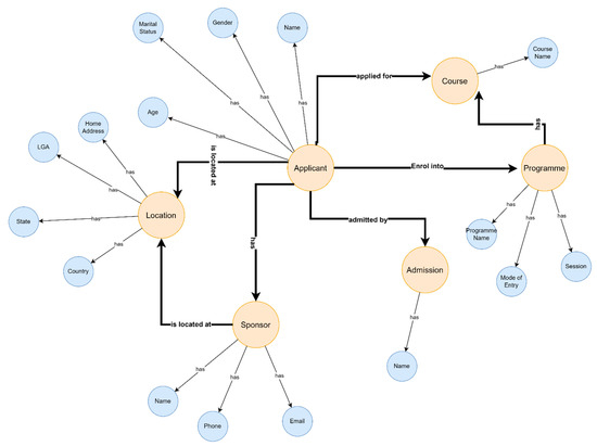 This study employed admission records obtained from the Benue State Polytechnic (BenPoly) online portal, representing a proof-of-concept implementation for Nigerian polytechnic institutions. The database contained the following classes, and their attributes shown in curly brackets were discovered: (i) applicant—{name, gender, marital status, and age}, (ii) program—{program name, mode of entry, and session}, (iii) location—{country, state, local government area, and home address}, (iv) course—{course name}, (v) sponsor—{sponsor name, sponsor phone, and sponsor email}, and (vi) admission—{admitted by}.