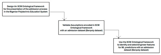 While ontologies have been widely used in education for structuring knowledge domains and supporting semantic interoperability [8,9], most existing admission-related ontologies are static and not empirically validated. They often serve as descriptive taxonomies rather than data-driven or decision-support tools. In contrast, our approach employs a causally grounded, empirically tested ontology that can support both knowledge discovery and predictive modeling. Additionally, while SCM has been applied in healthcare and economics for counterfactual reasoning and intervention analysis [10,11], its application in educational admissions modeling, especially in resource-constrained institutional contexts, remains underexplored.