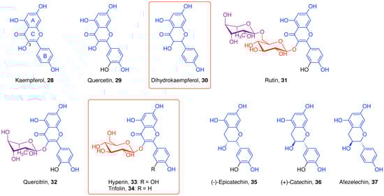 - Kitajima, M.; Hashimoto, K.-I.; Yokoya, M.; Takayama, H.; Sandoval, M.; Aimi, N. Two New Nor-triterpene Glycosides from Peruvian “Uña de Gato” (Uncaria tomentosa). J. Nat. Prod. 2003, 66, 320–323. [Google Scholar] [CrossRef]
