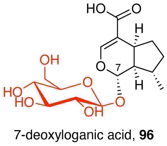 - Asada, K.; Salim, V.; Masada-Atsumi, S.; Edmunds, E.; Nagatoshi, M.; Terasaka, K.; Mizukami, H.; De Luca, V. A 7-Deoxyloganetic Acid Glucosyltransferase Contributes a Key Step in Secologanin Biosynthesis in Madagascar Periwinkle. Plant Cell 2013, 25, 4123–4134. [Google Scholar] [CrossRef]
