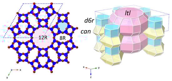 - Barrer, R.M.; Villiger, H. The crystal structure of the synthetic zeolite L. Z. Kristallogr. Cryst. Mater. 1969, 128, 352–370. [Google Scholar] [CrossRef]