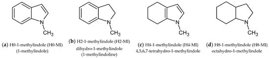 H0-MI: H0-1-methylindole (1-methylindole); H2-MI: H2-1-methylindole (dihydro-1-methylindole); H4-MI: H4-1-methylindole (4,5,6,7-tetrahydro-1-methylindole); H8-MI: H8-1-methylindole (octahydro-1-methylindole).