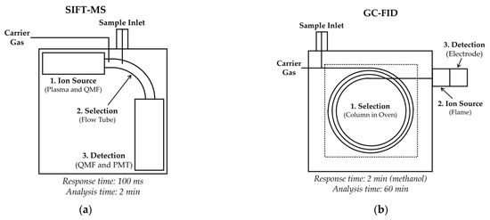 - Smith, D.; Španěl, P. Selected ion flow tube mass spectrometry (SIFT-MS) for on-line trace gas analysis. Mass Spec. Rev. 2005, 24, 661–700. [Google Scholar] [CrossRef]