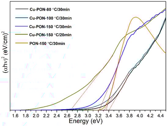 Band gap energy of the PON-150 °C/30 min and the catalysts modified with Cu.