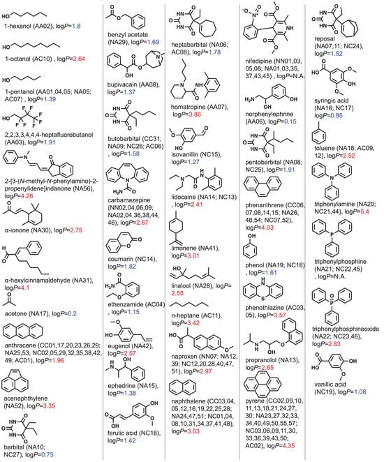 | CC06 | CG4/CG3 | −0.14 | 25 | ST | [24] | phenanthrene | −5.92 | 25 | UV–Vis | [24] |
