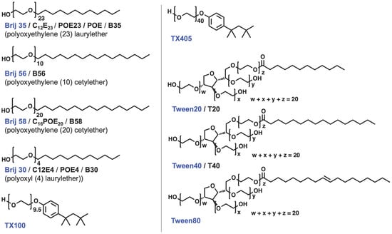 - Warr, G.G.; Grieser, F.; Healy, T.W. Composition of mixed micelles of polydisperse nonionic surfactants. J. Phys. Chem. 1983, 87, 1220–1223. [Google Scholar] [CrossRef]