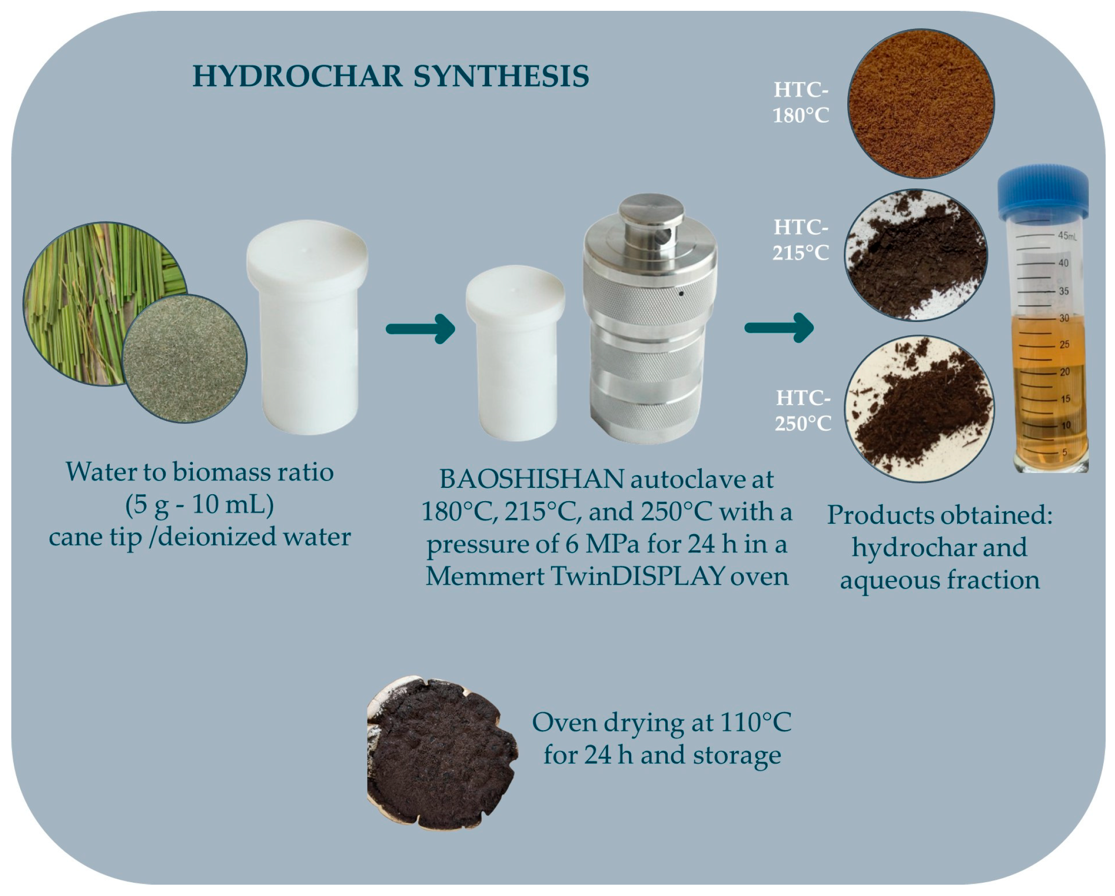 - Wang, T.; Yunbo, Z.; Zhu, Y.; Caiting, L.; Guangming, Z. A Review of the Hydrothermal Carbonization of Biomass Waste for Hydrochar Formation: Process Conditions, Fundamentals, and Physicochemical Properties. Renew. Sustain. Energy Rev. 2018, 90, 223–247. [Google Scholar] [CrossRef]