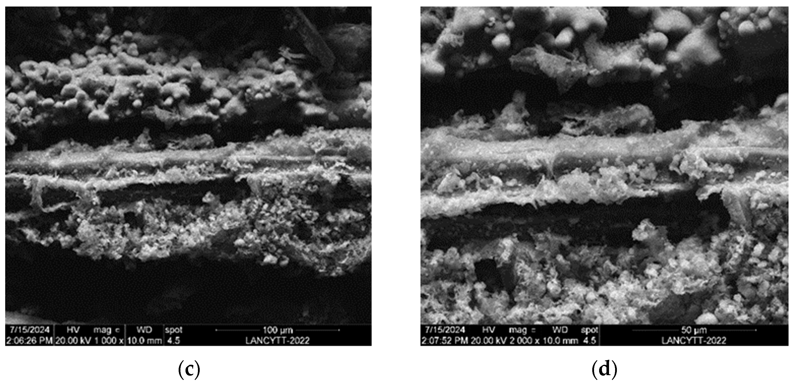 - Dos Santos, W.N.L.; Cavalcante, D.D.; da Silva, E.G.P.; das Virgens, C.F.; de Souza Dias, F. Biosorption of Pb(II) and Cd(II) ions by Agave sisalana (sisal fiber). Microchem. J. 2011, 97, 269–273. [Google Scholar] [CrossRef]